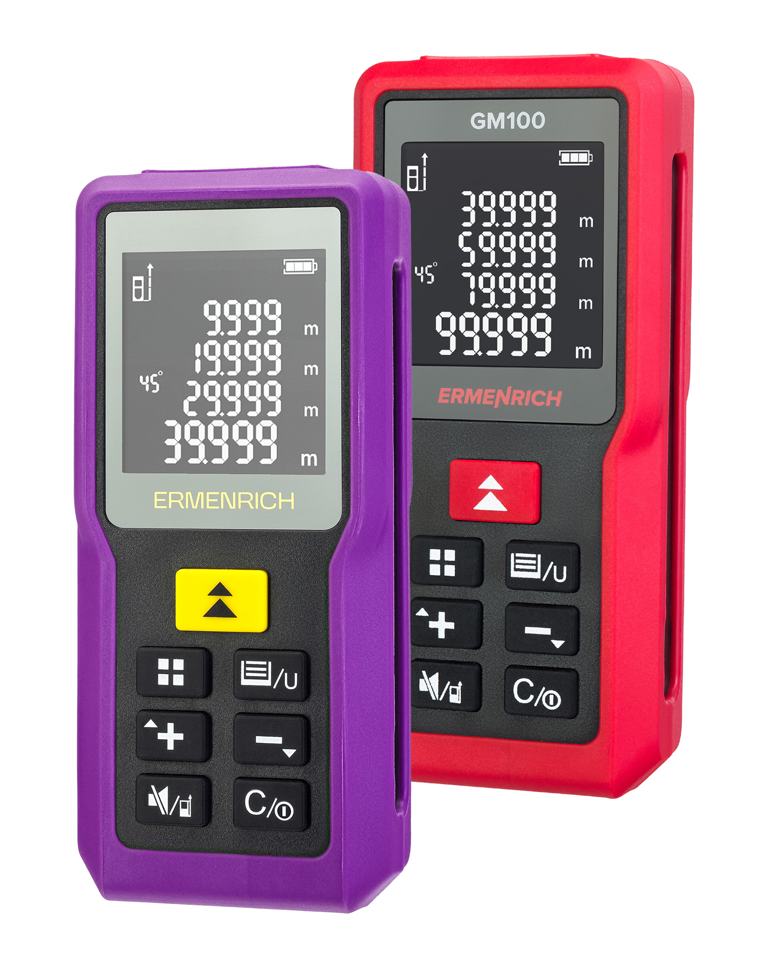 Ermenrich Reel PRO GM100 to dalmierz laserowy opracowany do pomiarów na placach budowy i miejscach renowacji. Może również służyć do wyznaczania granic działek, prac geodezyjnych i innych zastosowań wymagających precyzyjnych pomiarów wymiarów liniowych obiektów, ich powierzchni oraz objętości. Maksymalna odległość pomiaru wynosi 100 metrów. Dalmierz laserowy może również służyć jako laserowy kątomierz. Dzięki funkcji wykorzystującej twierdzenie Pitagorasa automatycznie oblicza odległość na podstawie pomiarów pośrednich. Ta funkcja jest szczególnie przydatna, jeśli nie można ustawić laser tak, by jego wiązka padała bezpośrednio na mierzony punkt.