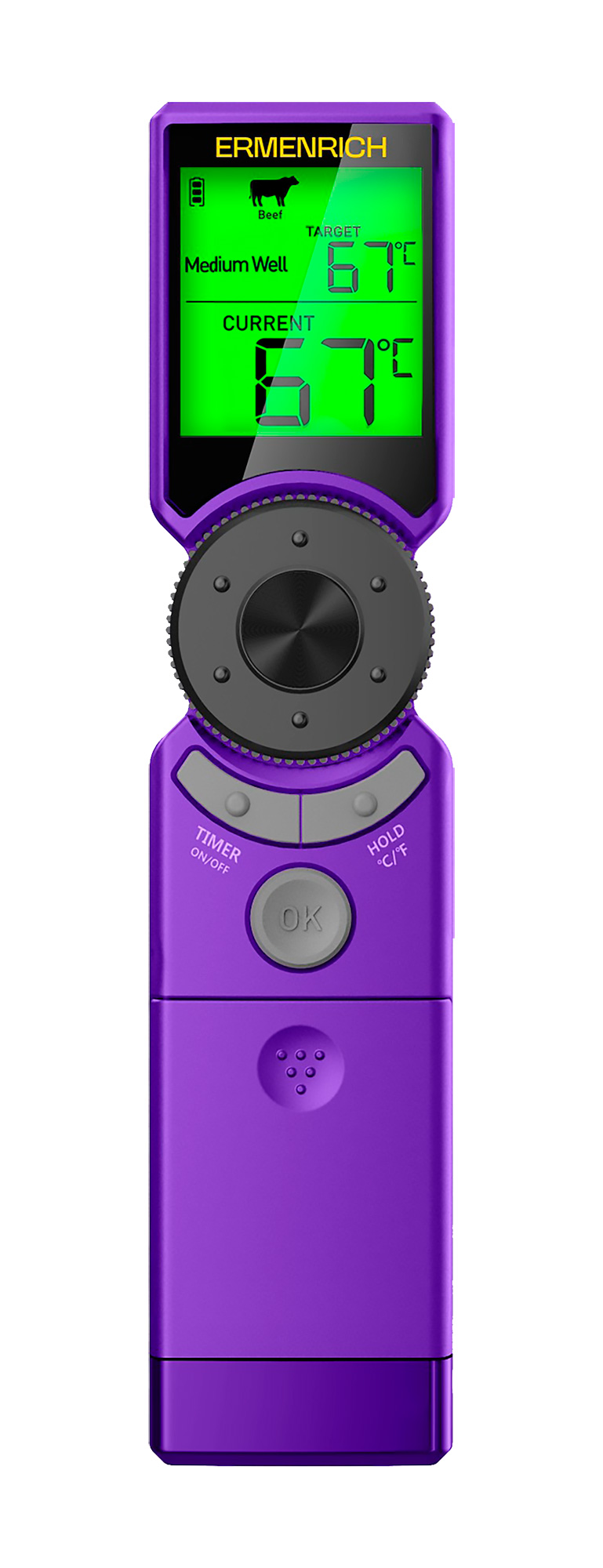 Poznaj model Ermenrich BBQ GT10 – nowego inteligentnego pomocnika w kuchni. Z tym termometrem każde mięso – soczysty kurczak, chudy indyk, stek wołowy czy soczysta jagnięcina – będzie przygotowane dokładnie tak, jak chcesz. Termometr ma wstępnie ustawione programy dla najpopularniejszych rodzajów mięsa i automatycznie sugeruje idealną temperaturę docelową i czas gotowania, które pozwolą uzyskać doskonały rezultat. Piecz, smaż i grilluj bez obaw i delektuj się pysznymi daniami za każdym razem.
