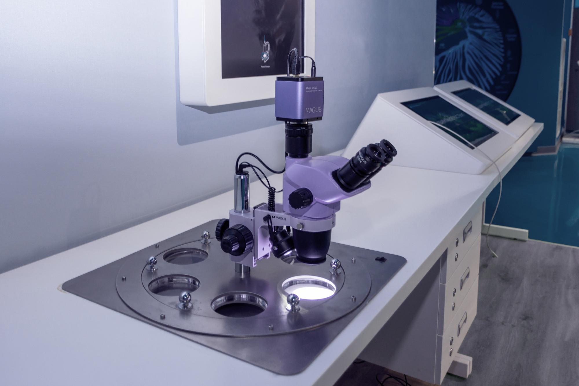 Stanowiska badawcze wyposażone są w mikroskopy stereoskopowe, kamery cyfrowe i ekrany. Dzięki takiej konstrukcji każda osoba odwiedzająca może korzystać z mikroskopu, samodzielnie zmieniać preparaty oraz oglądać próbki tkanek i mikroorganizmów na dużym ekranie.