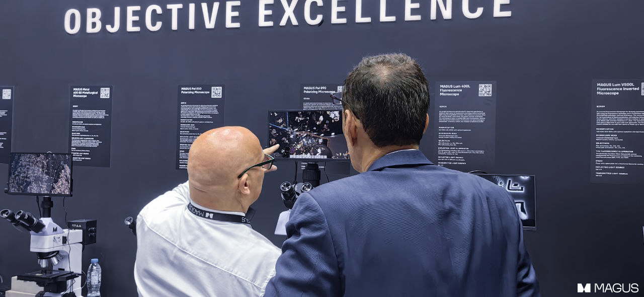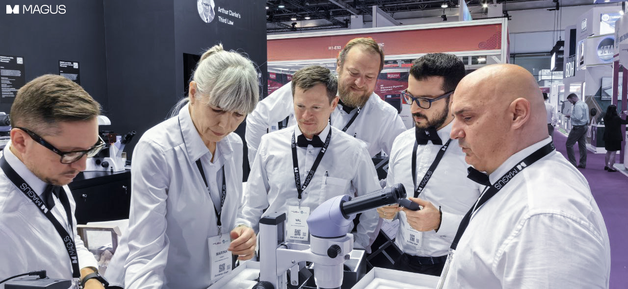 Podczas trzydniowych targów stanowisko MAGUS odwiedziło ponad 5500 specjalistów. Zapoznali się z ofertą naszych produktów, osobiście testowali przyrządy i zadawali naszym ekspertom branżowe pytania. Wielu odwiedzających zjawiło się z własnymi preparatami do badań, świadomi wysokiego poziomu wiedzy specjalistycznej firmy i jej zdolności do rozwiązywania złożonych wyzwań analitycznych. Mikroskopy MAGUS posłużyły do zbadania szerokiej gamy materiałów, w tym brylantów, nieprzetworzonych diamentów, olejów, materiałów tekstylnych oraz cienkiego przekroju petrograficznego prawdziwego meteorytu dostarczonego przez nasz zespół. Pozwoliło to w pełni zaprezentować uniwersalność i niezawodność naszych przyrządów.